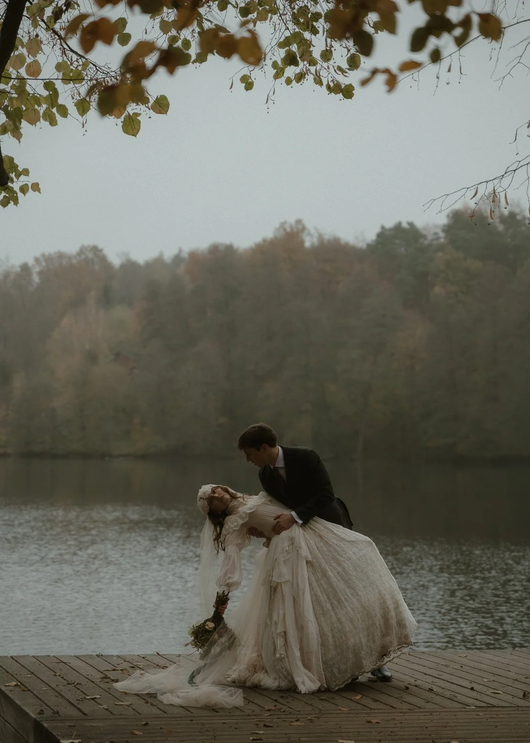 The landscape and architectural elements add depth and context, making Poland an ideal setting for vintage and antique wedding portraits, especially for couples drawn to an editorial aesthetic free from modern trends.